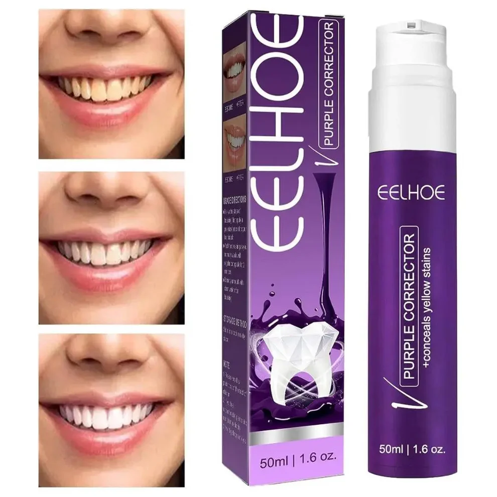 Purple Teeth Whitening, Color Corrector Toothpaste, Teeth Whitener, Tooth Stain Remover, Conceal Yellow Teeth, Instant Whitening Toothpaste, Teeth Brightening, White Smile Toothpaste, Yellow Stain Neutralizer, Gentle Whitening Formula.